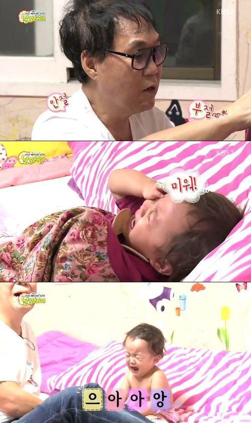 가수 조영남이 우는 아기를 돌보며 고군분투했다.