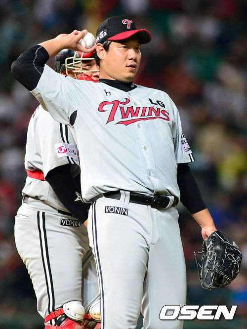18일 오후 인천 문학구장에서 열린 '2013 한국야쿠르트 세븐 프로야구' SK 와이번스와 LG 트윈스의 경기 7회말 2사 1루, 류제국이 마운드를 내려가고 있다.