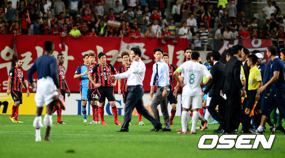 경기후 알 아흘리 선수들이 심판에 불만을 나타내고 있다. /jpnews@osen.co.kr