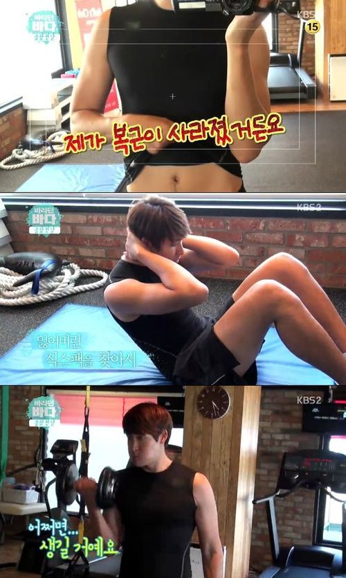 이날 정겨운은 '잠수 담당'으로, 항해 전 셀프 카메라를 통해 복근 만드는 과정을 공개했다. 그는 "상의 탈의를 해야할 수도 있는데, 복근이 사라져서 운동을 해야 한다"며 다양한 복근 운동을 진행했다.