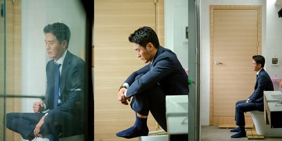 회사에서 뿐만 아니라 집안에서도 자상한 아빠, 능력 있는 가장이라는 가면을 쓰고 있어야 하는 그에게 화장실은 유일한 마음의 안식처이자 모든 것을 내려놓고 자신의 본 모습으로 쉴 수 있는 공간. 그래서 기러기아빠였을 때보다 더 외롭고 힘든 그가 매일 아침마다 화장실에서 마음을 다잡으며 혼자 '파이팅'을 외치는 모습에서는 애잔함마저 느껴진다.