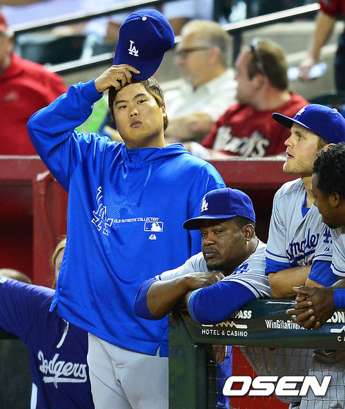 8회 덕아웃에서 다저스 류현진이 아쉬운 표정을 짓고 있다. / rumi@osen.co.kr