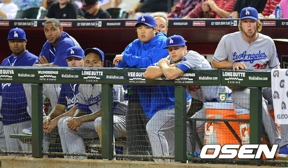 8회 덕아웃에서 류현진을 비롯한 선수들이 경기를 주시하고 있다. / rumi@osen.co.kr