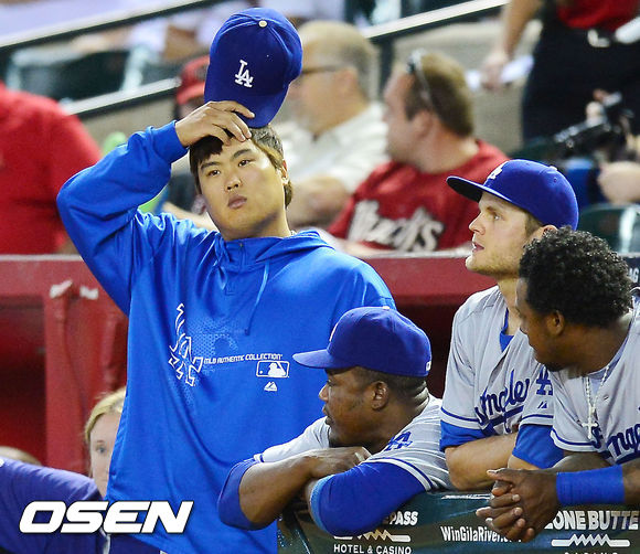 8회 덕아웃에서 다저스 류현진이 아쉬운 표정을 짓고 있다. / rumi@osen.co.kr