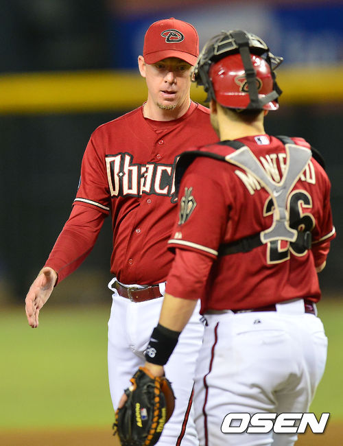 경기를 마치고 애리조나 브래드 지글러와 미겔 몬테로가 하이파이브를 하고 있다. / rumi@osen.co.kr