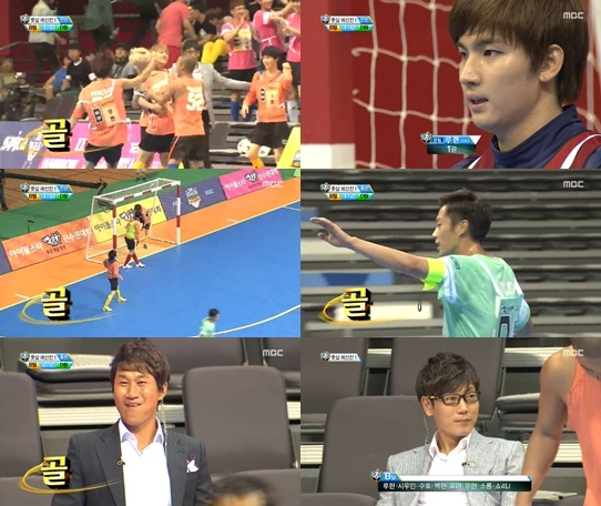 19일 오후 방소된 추석특집 예능프로그램 '아이돌 육상 풋살 양궁 선수권 대회'(이하 아육대)에서 남자 아이돌들의 풋살 예선전이 진행됐다.