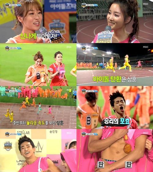 새로운 '육상돌'이 탄생했다. 남성그룹 백퍼센트 멤버 상훈과 걸그룹 달샤벳 멤버 가은이 100m 달리기에서 금메달을 차지했다.