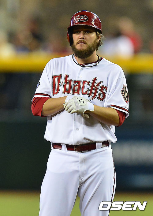 20일 (이하 한국시간) 미국 애리조나 피닉스 체이스필드에서 열린 2013 메이저리그 애리조나 다아아몬드백스와 LA 다저스 경기, 3회말 2사 주자 2,3루 웨이드 밀리가 좌전 2타점 적시타를 날린 후 2루에서 장갑을 벗고 있다.