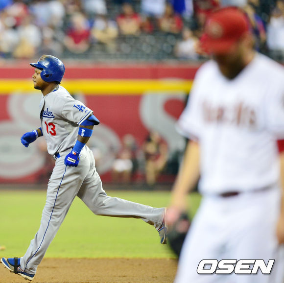 선취점을 올린 쪽은 다저스다. 다저스는 3회 리키 놀라스코와 야시엘 푸이그의 볼넷으로 누상에 주자 두 명이 나갔다. 제리 헤어스톤이 내야땅볼로 물러난 가운데 타석에 선 핸리 라미레스는 애리조나 선발 웨이드 밀리의 초구를 공략, 좌측 담장을 넘어가는 스리런 홈런으로 연결시켰다. 올 시즌 라미레스의 19호 홈런.