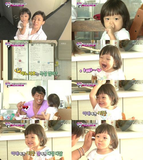 추성훈은 귀여운 딸의 애교에 얼굴 가득 미소를 머금었고, 말장난을 하는 등 즐거운 분위기에서 식사를 마쳤다. 또 과일을 먹으면서 딸에게 말을 가르쳐주는 등 능숙한 모습을 보여줘 눈길을 끌었다.