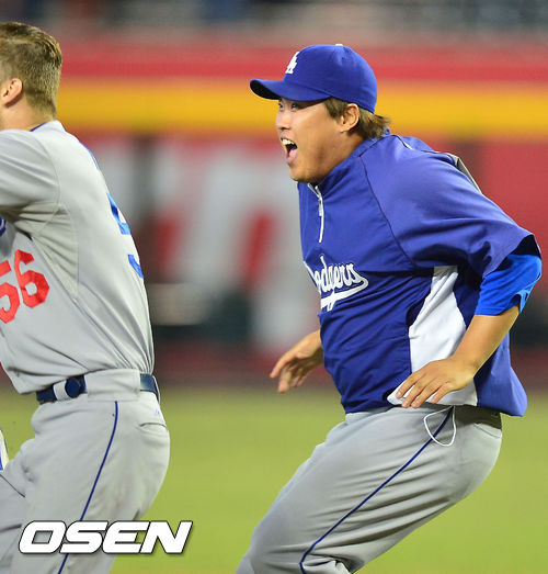 경기를 마치고 류현진이 기뻐하고 있다./ rumi@osen.co.kr