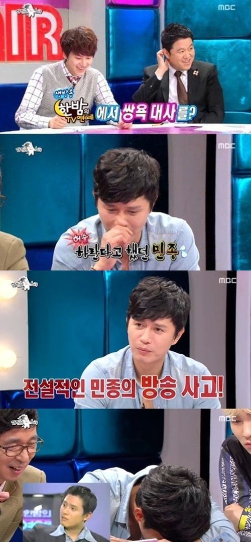 이날 방송에서 MC 김국진은 "김민종씨가 방송 사고를 냈다. 기억할지 모르겠지만 '한밤의 TV연예'에서 갑자기 쌍욕 대사를 해서 MC들을 당황하게 만들었다"고 말문을 열었다.