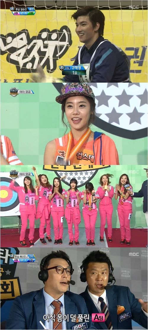 한편 아이돌 스타들의 체육 경연장인 ‘아육대’는 미쓰에이, 슈퍼주니어 M, 2AM, 엠블랙, 비스트, 인피니트, 시크릿, 제국의 아이들, B1A4, 틴탑, 엑소, 걸스데이, 에이핑크, 비투비, 크레용팝이 출연했다.