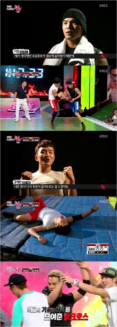 가수 이정이 속한 닭크호스와 개그맨 윤형빈이 속한 붉은 수탉은 시작부터 인정사정이 없었다. 이정과 윤형빈은 연예인이라는 직업과 예능프로그램 출연이라는 목적을 잊은 채 굳게 입을 다물고 필살기 기술들을 내놓았다. 여기에 격투기 선수와 비보이 출신 이들의 파트너들은 입이 다물어지지 않을 정도의 기습적이고 강력한 공격을 쏟아냈다.