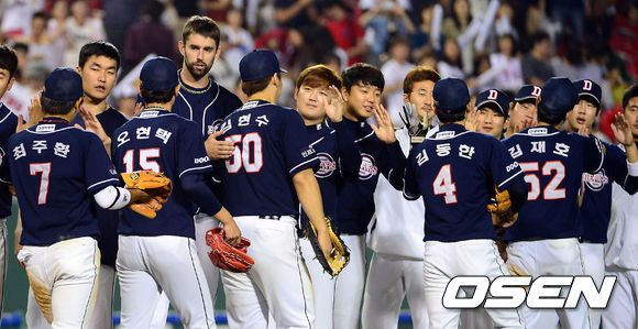 승리를 거둔 두산 선수들이 기뻐하고 있다./youngrae@osen.co.kr
