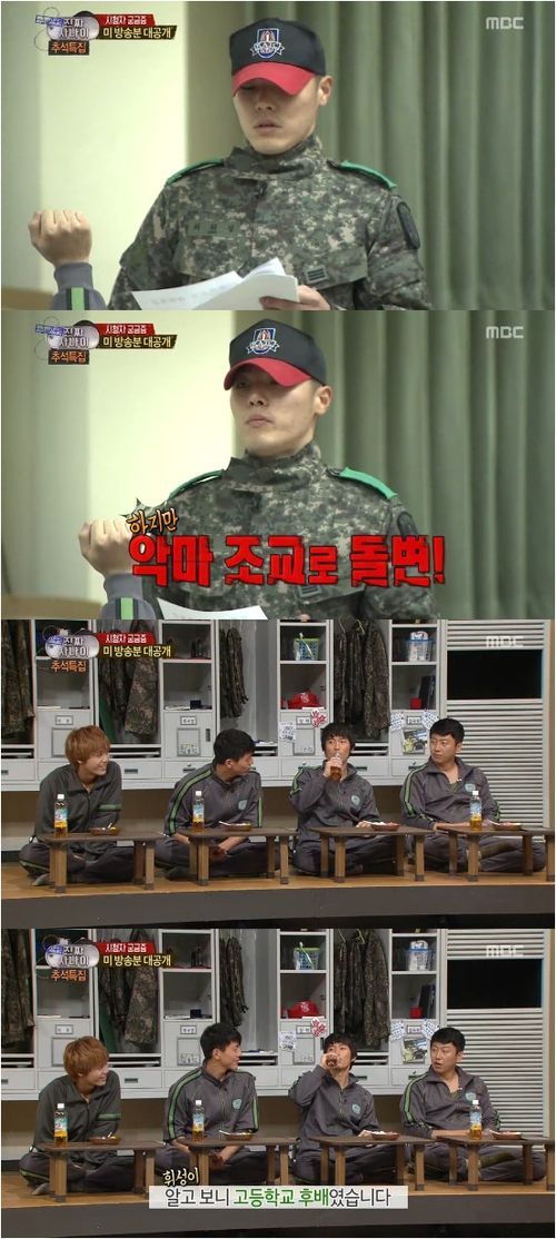 김수로는 “다 거짓말이다. 알고보니 휘성 씨가 류수영 씨의 고등학교 후배였다”고 말한 후 류수영에게 “휘성을 가만두지 말라. 선배로서 따끔하게 혼내야 한다”고 밝혀 웃음을 자아냈다. 앞서 휘성은 ‘진짜 사나이’ 멤버들이 논산 훈련소에서 신병 교육을 받을 때 악마 조교로 등장해 호된 훈련을 시켰다.