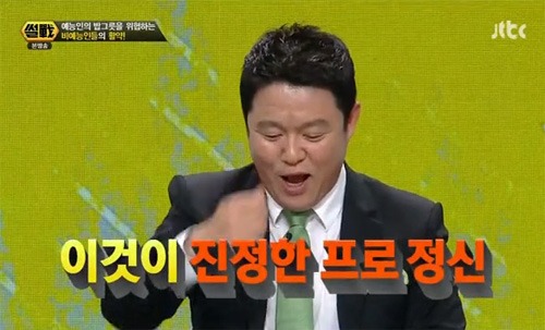 김구라는 지난 19일 방송된 JTBC '썰전'에서 자신이 연예인병 5기라고 밝히며 연예인들의 '연예인병'을 기수별로 설명했다.