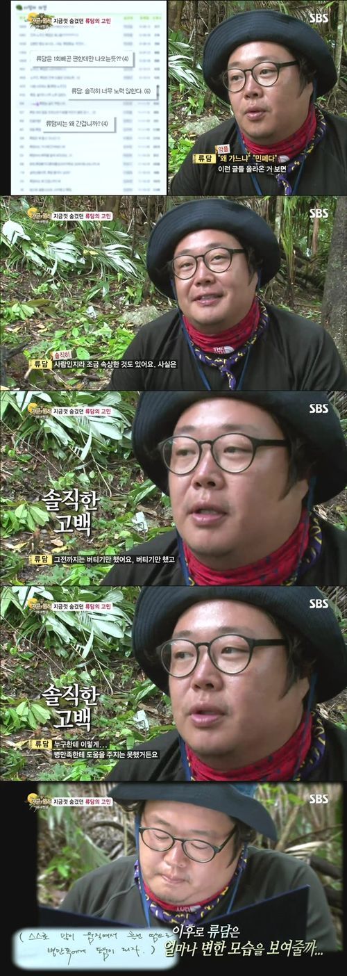 류담은 20일 오후 방송된 SBS 예능프로그램 '정글의 법칙 in 마야정글'(이하 정글의 법칙)에서 이전과는 다른 모습을 보여주기 위해 더욱 노력했음을 고백했다.