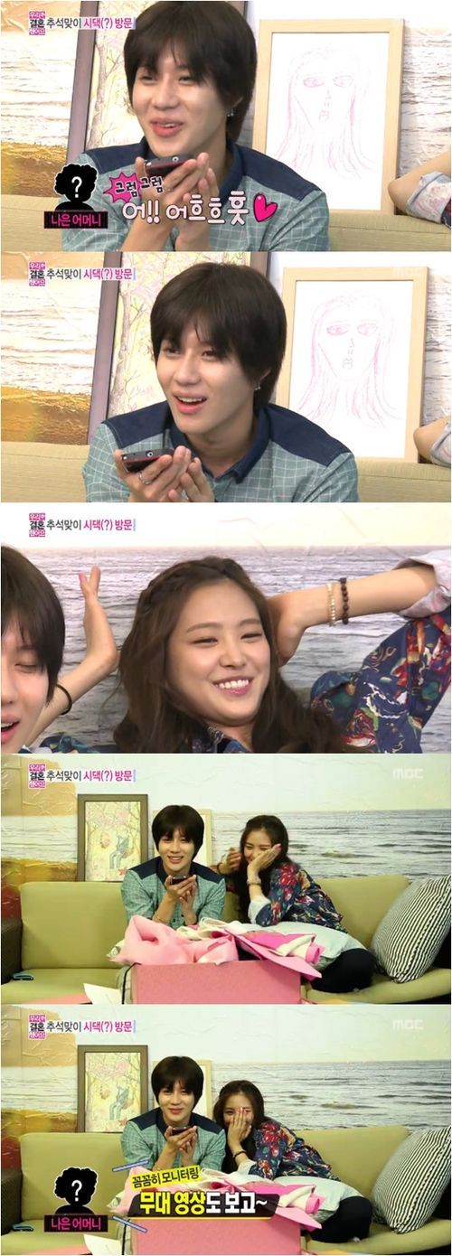 태민과 손나은은 21일 방송된 MBC 예능프로그램 ‘우리 결혼했어요 시즌 4’(이하 ‘우결4’)에서 샤이니 멤버들에게 추석 인사를 하라는 제작진의 주문을 받았다.