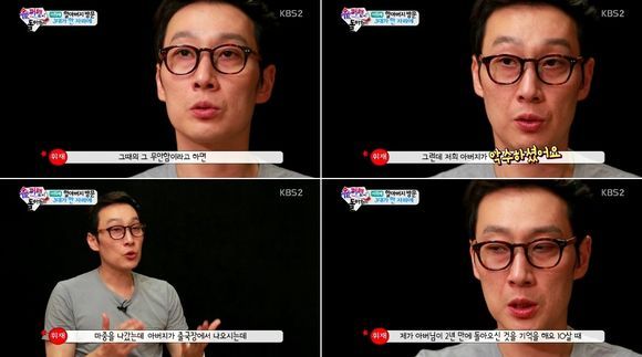 방송인 이휘재가 어린시절 무뚝뚝한 아버지 때문에 상처를 받았던 기억을 털어놨다.
