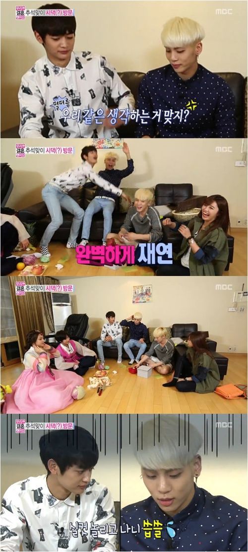 태민과 손나은은 21일 방송된 MBC 예능프로그램 ‘우리 결혼했어요 시즌 4’(이하 ‘우결4’)에서 샤이니 숙소로 추석 인사를 떠났다. 여기에 샤이니 멤버 키와 소개팅을 한 에이핑크 정은지까지 함께 했다.