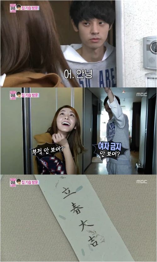 정준영은 21일 방송된 MBC 예능프로그램 ‘우리 결혼했어요 시즌 4’(이하 ‘우결4’)에서 가상 아내 정유미가 갑작스럽게 찾아오자 집에 있던 부적을 가리키며 여자 출입금지라고 장난을 걸었다.