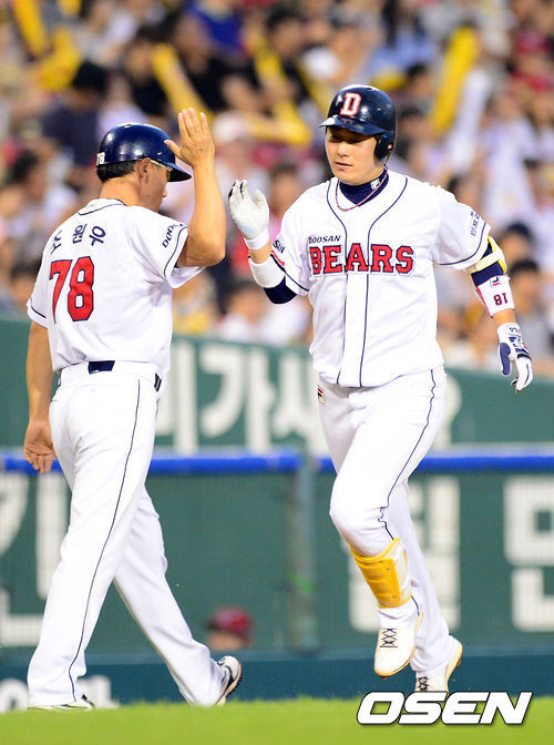 이 홈런으로 두산은 KIA에 8-6으로 앞서가고 있다.