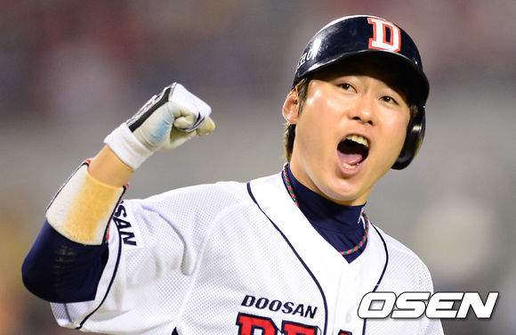 21일 오후 서울 잠실야구장에서 열린 2013 한국야쿠르트 세븐프로야구 두산 베어스와 KIA 타이거즈의 경기, 7회말 2사 1,2루에서 두산 이원석이 좌월 스리런 홈런을 치고 그라운드를 돌며 환호하고 있다.