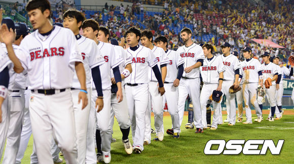 경기 종료 후 두산 선수들이 승리의 기쁨을 나누고 있다./sunday@osen.co.kr