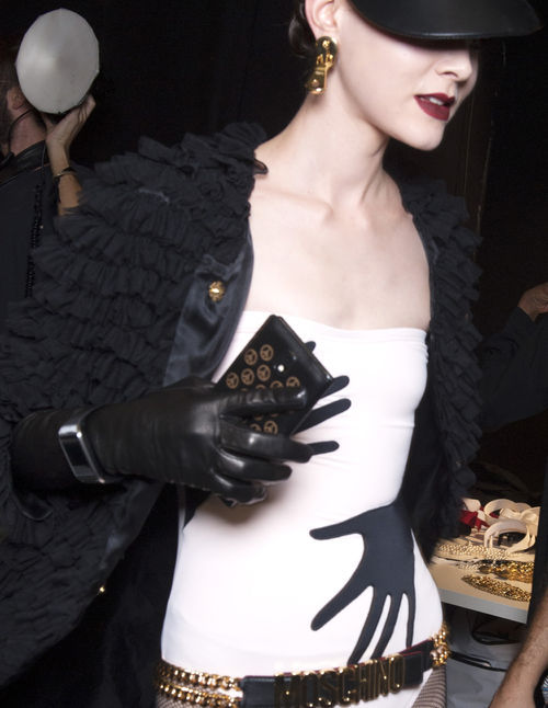 모스키노는 새로운 컬렉션을 선보이며, peace(혹은 heart) 문양의 커버를 씌운 '갤럭시 노트 3'와 '갤럭시 기어'를 매칭해 패션쇼를 완성했다.