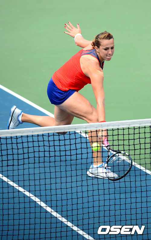 22일 오후 서울 올림픽공원 테니스코트에서 열린 '2013 KDB 코리아오픈' 단식 결승 라드반스카와 파블류첸코바의 경기, 파블류첸코바가 라드반스카의 공격을 리시브하고 있다.
