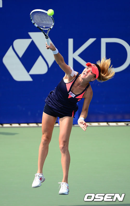 22일 오후 서울 올림픽공원 테니스코트에서 열린 '2013 KDB 코리아오픈' 단식 결승 라드반스카와 파블류첸코바의 경기, 라드반스카가 서브를 넣고 있다.