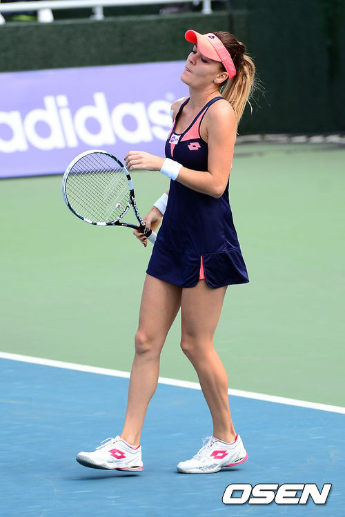 22일 오후 서울 올림픽공원 테니스코트에서 열린 '2013 KDB 코리아오픈' 단식 결승 라드반스카와 파블류첸코바의 경기, 라드반스카가 실점을 한뒤 아쉬운 표정을 짓고 있다.