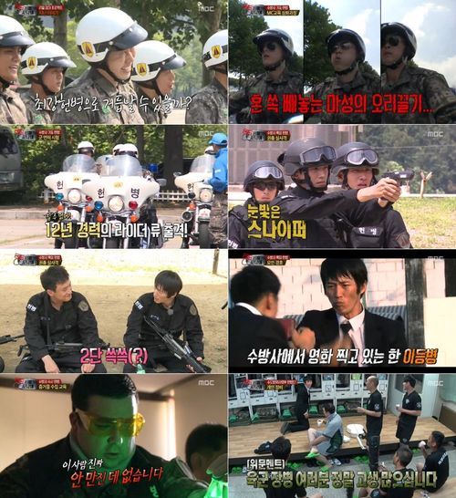 김수로, 류수영, 손진영 등은 헌병 기동대로 나섰다. 이들은 무려 360kg 무게의 모터사이클을 끌고 이동하는 이른바 '오리끌기' 훈련으로 진땀을 빼는가하면, 서울 시내로 나가서 작전을 수행하기 위한 과정인 면허 시험에 도전하는 과정을 소화했다.