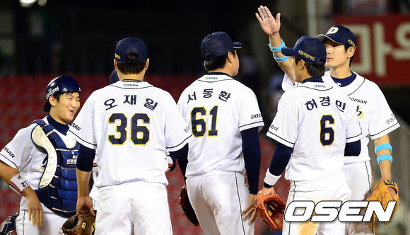 승리를 거둔 두산 선수들이 기뻐하고 있다./youngrae@osen.co.kr