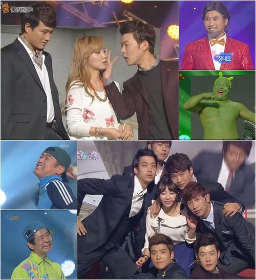 그런가하면 ‘용감한 녀석들’과 ‘정여사’로 활약했던 정태호는 ‘점점점’에 깜짝 출연, 나훈아 특유의 미소와 손동작을 선보여 스튜디오를 웃음바다로 만들었다. 개그맨 홍인규의 아들 홍태경군도 ‘전설의 레전드’를 통해 오랜만에 ‘개콘’에 출연, “대박 대박 대박사건” “확 그냥 막 그냥”등의 유행어를 선보였다.