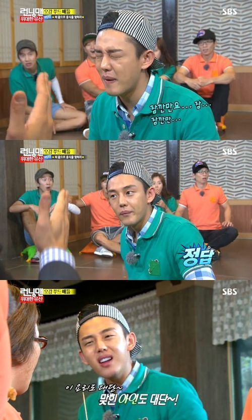 '오감 푸드 배틀'에서 튀김이 문제로 나오자 이광수와 김종국은 '귤튀김', '자몽튀김'이라고 오답을 내 '띠' 소리를 들었지만 유아인은 젤리 튀김, 정답을 맞춰 주위의 탄성을 들었다.