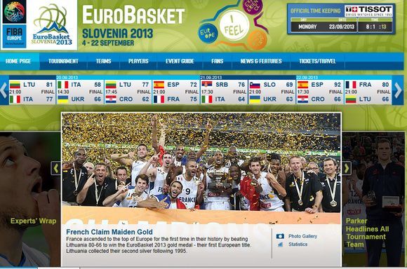 프랑스 남자농구대표팀은 23일 새벽(이하 한국시간) 슬로베니아 류블랴나에서 개최된 2013 유로바스켓 결승전에서 리투아니아를 80-66으로 대파하고 우승을 차지했다. 프랑스는 역대 세 번째 결승진출만에 감격의 첫 우승을 달성했다.