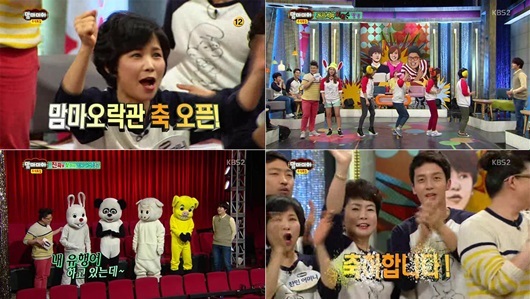 지난 22일 방송된 '맘마미아' 추석특집 '맘마 오락관'에는 허경환 모자를 비롯해 이상호-이상민 모자, 정찬민 모자, 필독 모자, 박은영 모녀, 김영희 모녀, 솔비 모녀, 김지민 모녀 등 스타들의 어머니가 총출동, 한가위 명절 가족 예능을 선보였다.
