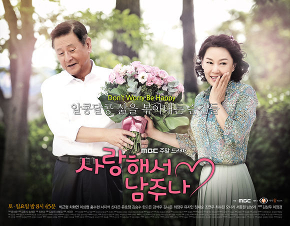 ‘꽃다발 프로포즈’ 버전의 메인 포스터는 수줍은 표정을 한 채로 꽃다발을 내미는 박근형과 부끄러운 듯, 한 손으로 입을 가리면서도 다른 손으로 꽃을 받는 차화연의 귀여운 표정이 한껏 살아있어 ‘황혼 로맨스’의 느낌을 전한다. 또한 포스터에 적힌 ‘돈 워리 비 해피(Don’t Worry Be Happy)-알콩달콩 삶을 볶아내는 순간들’이라는 메인 문구는 산뜻하고 발랄한 느낌이 가득하다.