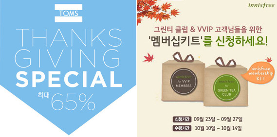[OSEN=이슈팀] 탐스와 이니스프리 브랜드가 추석 대목 연휴가 끝난 뒤에 오히려 대박을 터뜨려 눈길을 모으고 있다. 탐스와 이니스프리는 9월 마지막주 첫째 날인 23일 깍아주고 덤을 주는 이벤트 행사를 개최, 하루종일 네티즌들의 시선을 모으면서 접속자 폭주로 홈페이지 서버가 다운될 정도의 손님 행렬에 환호하는 중이다.