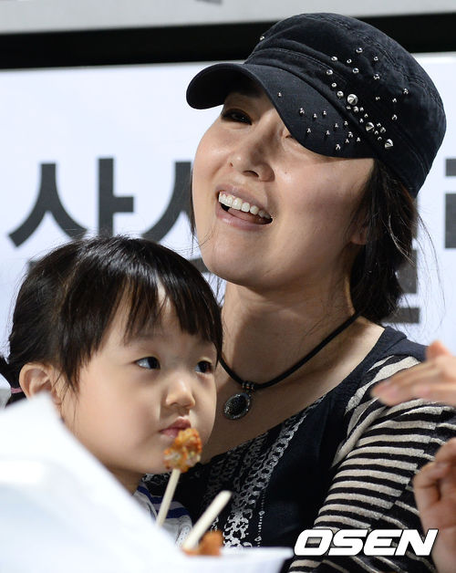23일 오후 대구구장에서 열린 '2013 한국야쿠르트 세븐 프로야구' 삼성 라이온즈와 한화 이글스의 경기, 삼성 박한이 부인과 딸이 인터뷰를 하고 있다.
