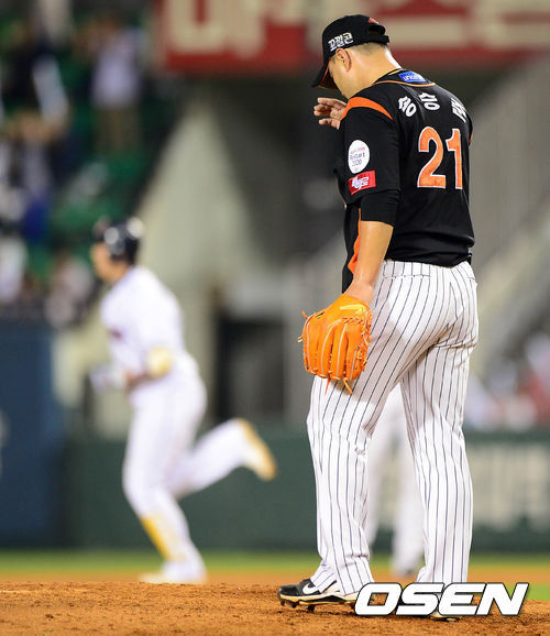 홈런으로 인해 흔들렸기 때문일까. 송승준은 허경민에게 볼넷과 2루 도루를 내준 뒤 결국 마운드를 정대현에게 넘기고 물러나야 했다. 다행히 정대현이 최재훈을 중견수 플라이로 처리하며 승계주자 실점을 막았다.