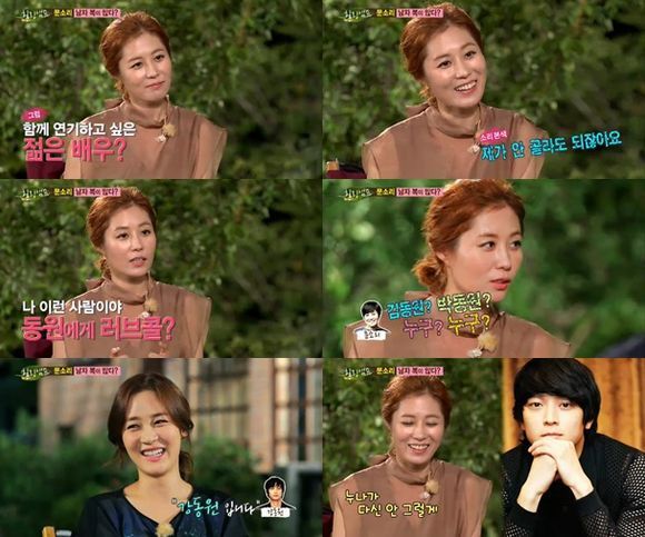그는 "그런데 도저히 동원이가 생각이 안 났다. ‘누구냐'고 물었더니 '강동원입니다'는 답장이 왔다”라면서 본의아니게 강동원에게 굴욕을 선사한 일화를 공개, “동원아 미안하다. 누나가 다시는 안 그럴게”라고 공개사과해 웃음을 자아냈다.