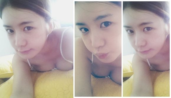 공개된 사진은 화장기 없는 민낯으로 침대에 누워 찍은 셀카 사진. 민낯임에도 불구, 굴욕없는 미모와 아찔한 가슴라인이 보는 이들의 시선을 사로잡는다.