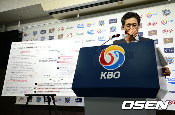 24일 오전 서울 도곡동 야구회관에서 열린 창원신축야구장 입지 타당성 재조사 결과 발표 및 간담회에서 양해영 사무총장이 결과를 발표하고 있다.
