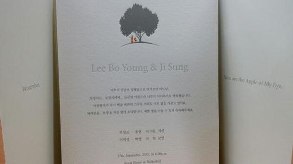 지성의 소속사인 나무엑터스는 공식 트위터를 통해 이들의 청첩장 사진과 함께 '9월27일 결혼식을 올리는 배우 지성님! 애정이 가득 담긴 청첩장을 공개합니다♥ 멘트 하나하나에 서로에대한 사랑과 믿음이 느껴지는것 같아요~♥트친님들 많이많이 축하해주세욥!!'라는 글을 남겼다.