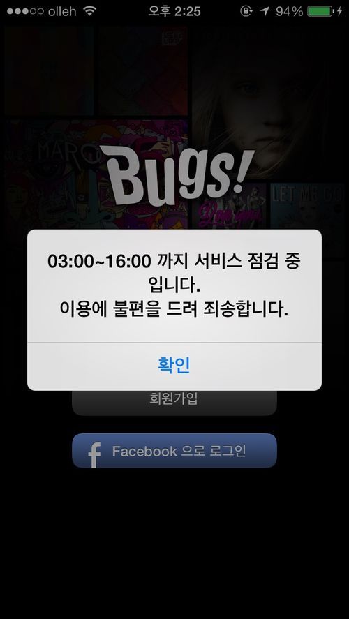 24일 오후 2시경 벅스에 따르면, 오후 4시까지 서비스 점검을 한다고 밝혔다. 그러나 오전부터 점검시간을 수차례 계속 연장을 하고 있는 상황.
