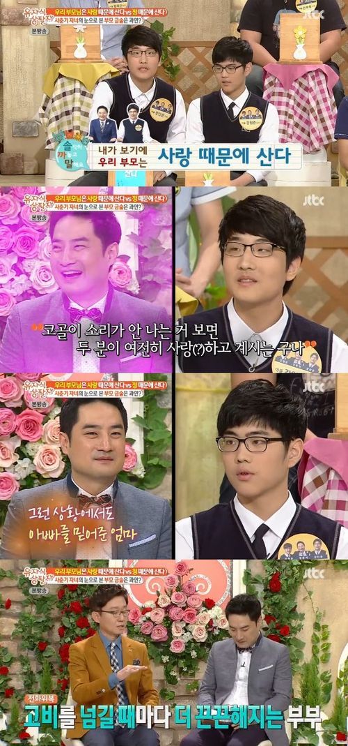 반면 형 원준은 “우리 부모는 정 때문에 산다”고 입장을 밝혔다. 그는 “아빠는 고민이 있으면 무조건 엄마와 상의한다. 엄마와 아빠는 부부라기보다 베스트 프렌드 같다”며 강용석의 아나운서 발언으로 집에 기자들이 찾아왔을 때도 엄마가 의연하게 대처했던 상황을 덧붙여 눈길을 끌었다.