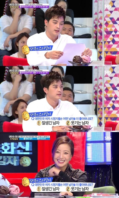 배우 김지훈이 잘생긴 남자와 웃긴 남자 중 어떤 사람이 여성들에게 인기가 많을지 질문을 던졌다.